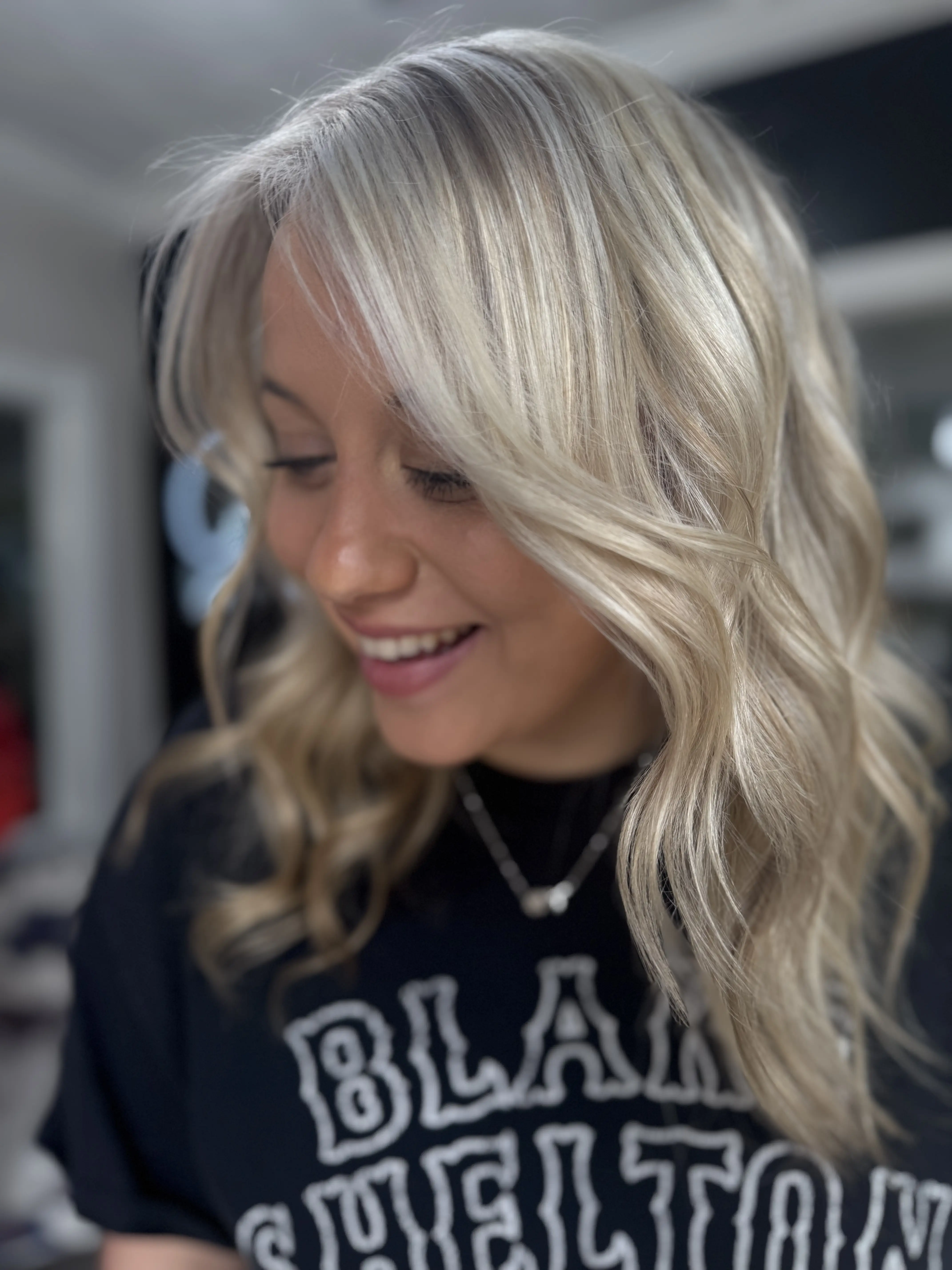 Ready to add some serious glow to your look? The Money Piece is a gorgeous, face-framing highlight that instantly lifts and brightens your style. It's a super simple way to get that lived-in, sun-kissed vibe without a full color overhaul. Whether you want a soft shimmer or bold statement, we can totally customize this just for you. Let’s make your hair pop and turn heads—ready for the glow-up?
